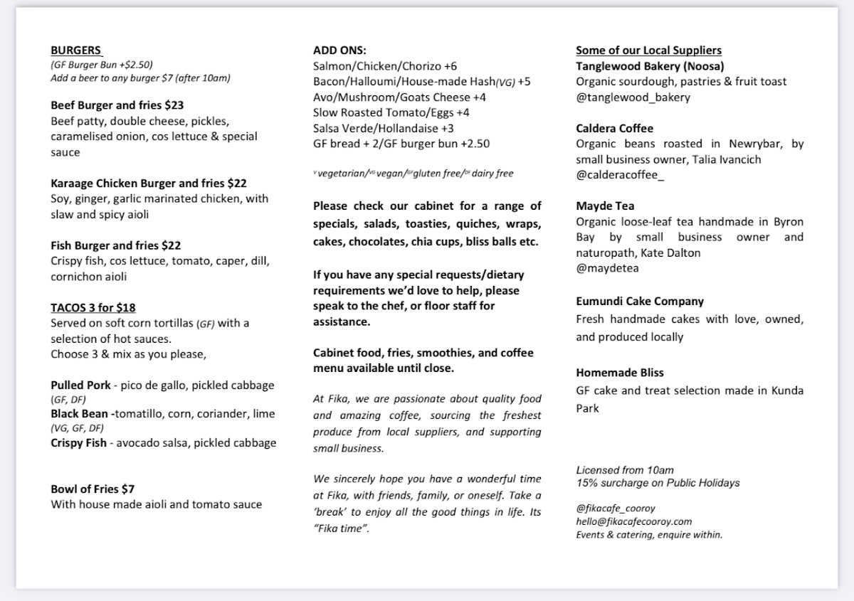 Fika Cafe Cooroy is more than just a purveyor of great coffee and delectable brunch options; it is a community hub where friends gather and stories are shared. Whether you're a local or just passing through, this charming cafe is a must-visit destination that promises great food, a welcoming atmosphere, and excellent service.